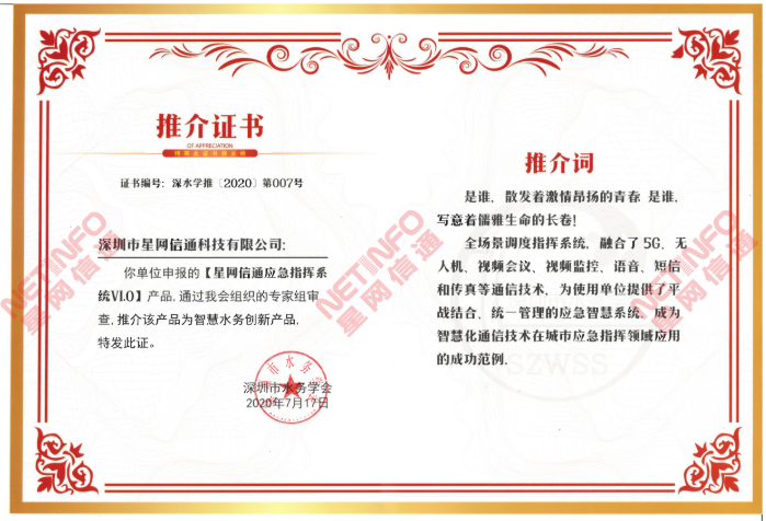 歲月走過昨天的路,生命唱響明天的歌。我司的應(yīng)急指揮系統(tǒng)成為智慧化通信技術(shù)在城市應(yīng)急指揮領(lǐng)域應(yīng)用的成功范例。獲得深圳市水務(wù)學(xué)會(huì)的推介!