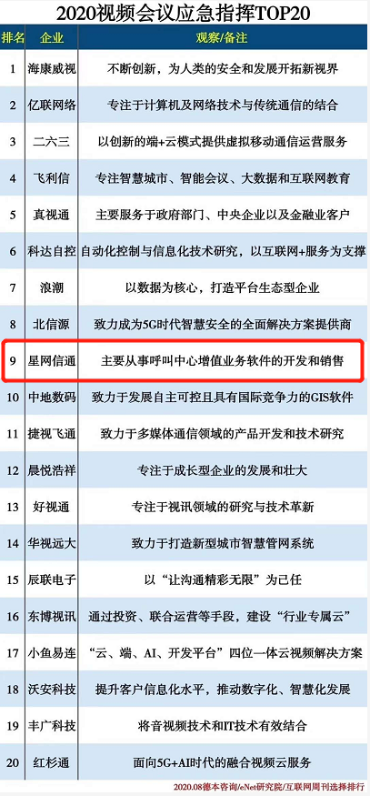 在硅谷動力網站發布,硅谷動力與互聯網周刊聯合構建各行各業的光榮榜上,星網以領先的行業技術在應急指揮領域占有一席之地。