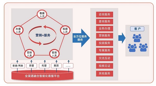 (4)全員統(tǒng)一服務:除了客服中心坐席人員,支持包括后臺人員、客戶經(jīng)理、投資顧問等其他人員,統(tǒng)一通過客服中心平臺為客戶提供全方位的服務,并根據(jù)監(jiān)管部門的要求,對整個服務過程進行錄音、留痕等監(jiān)管措施。公司分支機構(gòu)后臺人員、客戶經(jīng)理、投資顧問等員工可以通過操作CRM系統(tǒng)、APP、投顧系統(tǒng)等平臺調(diào)用呼叫中心相關(guān)模塊的方式,進行客戶服務,實現(xiàn)整合公司全體資源,對內(nèi)協(xié)同辦公、靈活調(diào)度、全員參與,對外統(tǒng)一服務、提升公司品牌形象。